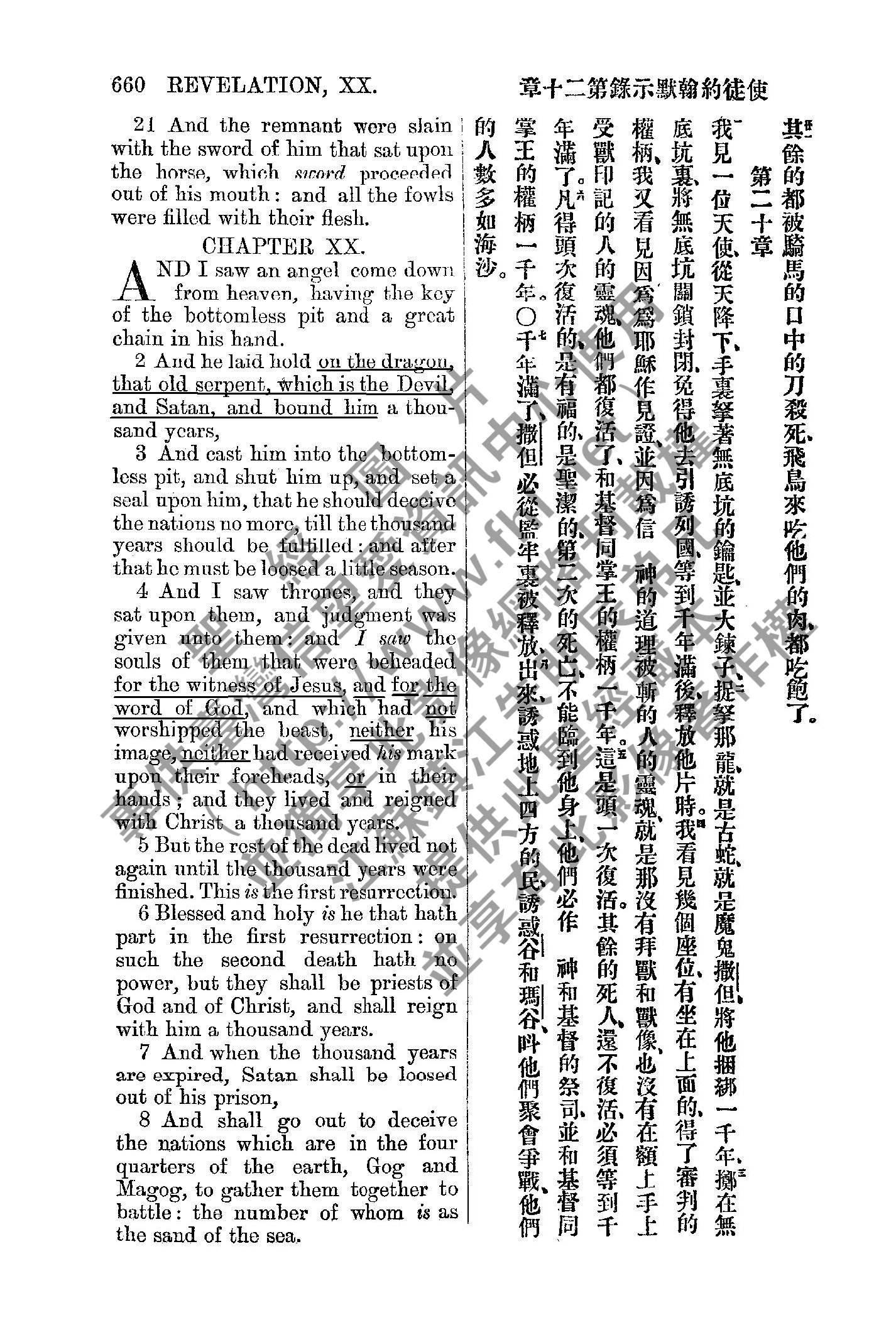 1885年新約全書 啟示錄 19 章 21 節到 20 章 8 節