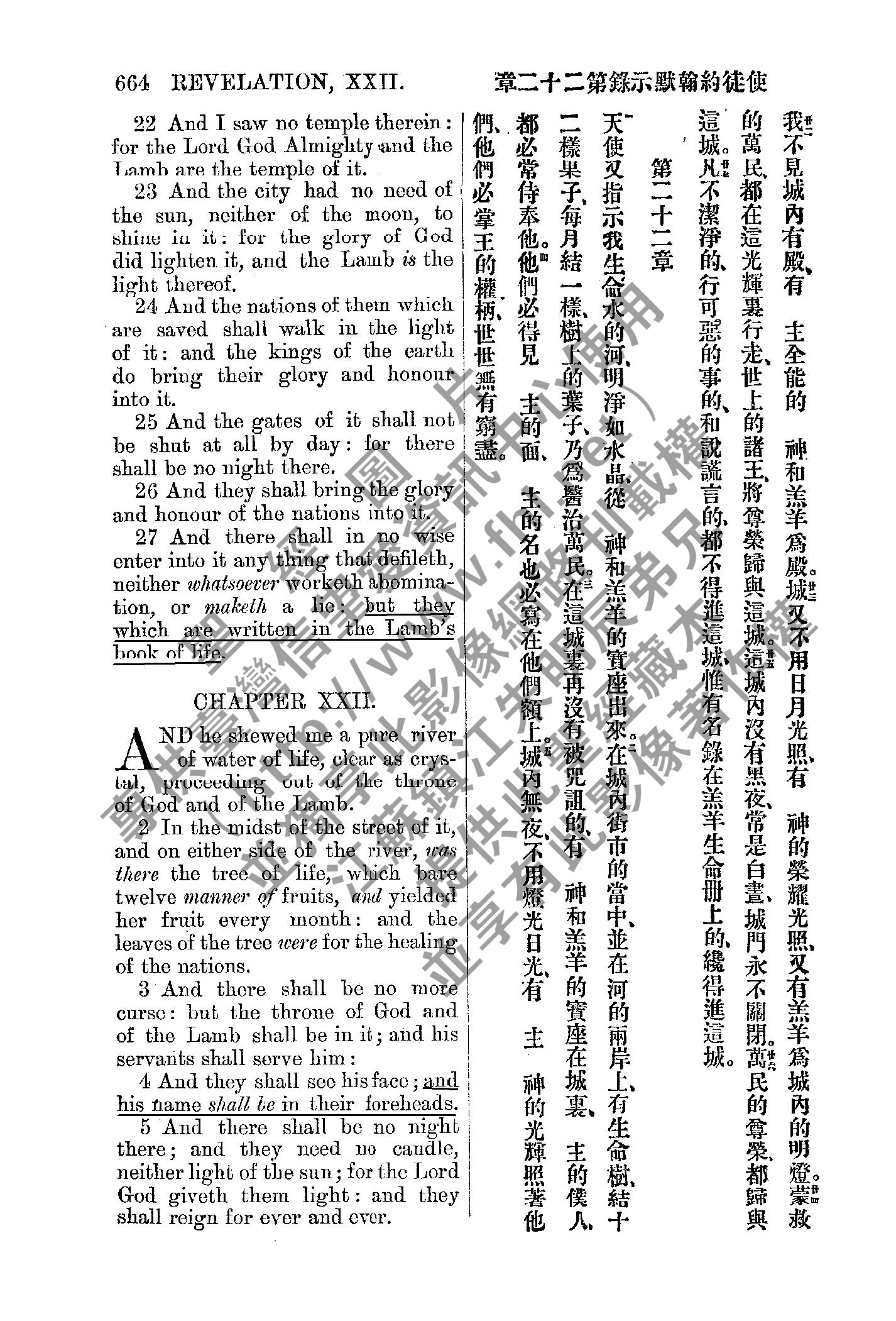 1885年新約全書 啟示錄 21 章 22 節到 22 章 5 節