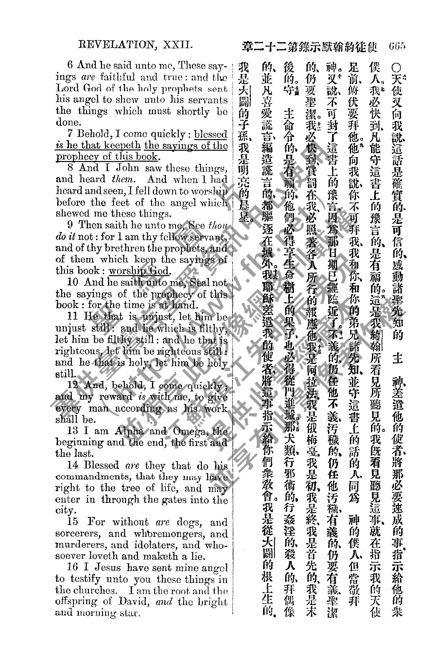 1885年新約全書 啟示錄 22 章 6 節到 22 章 16 節