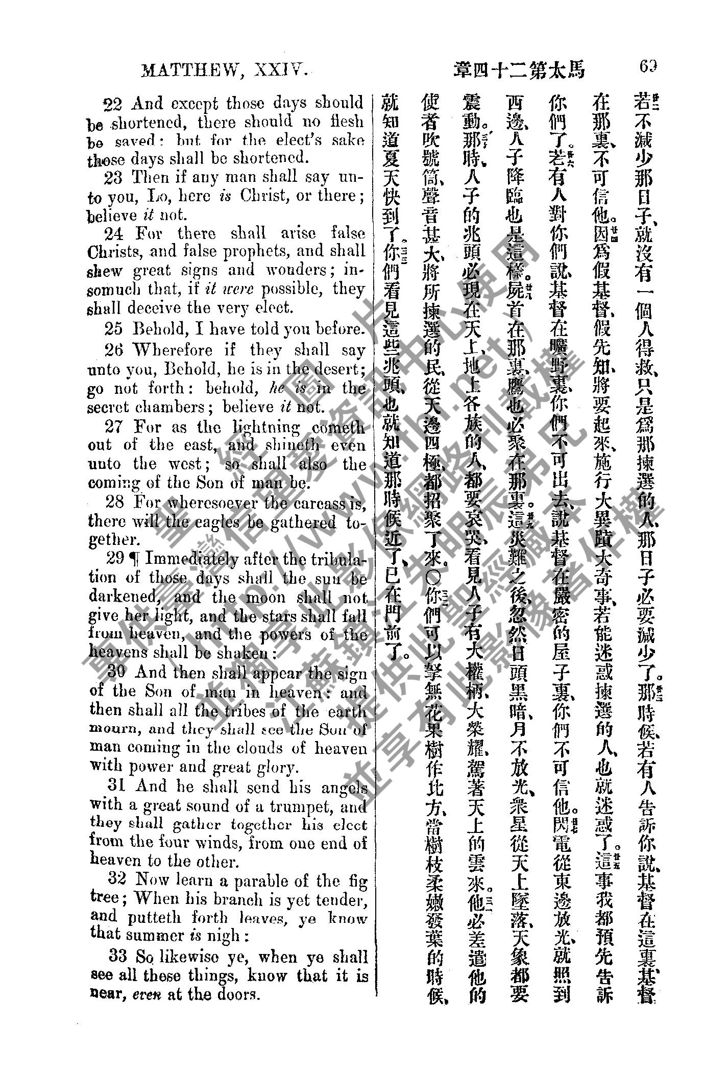 1885年新約全書 馬太福音 24 章 22 節到 24 章 33 節