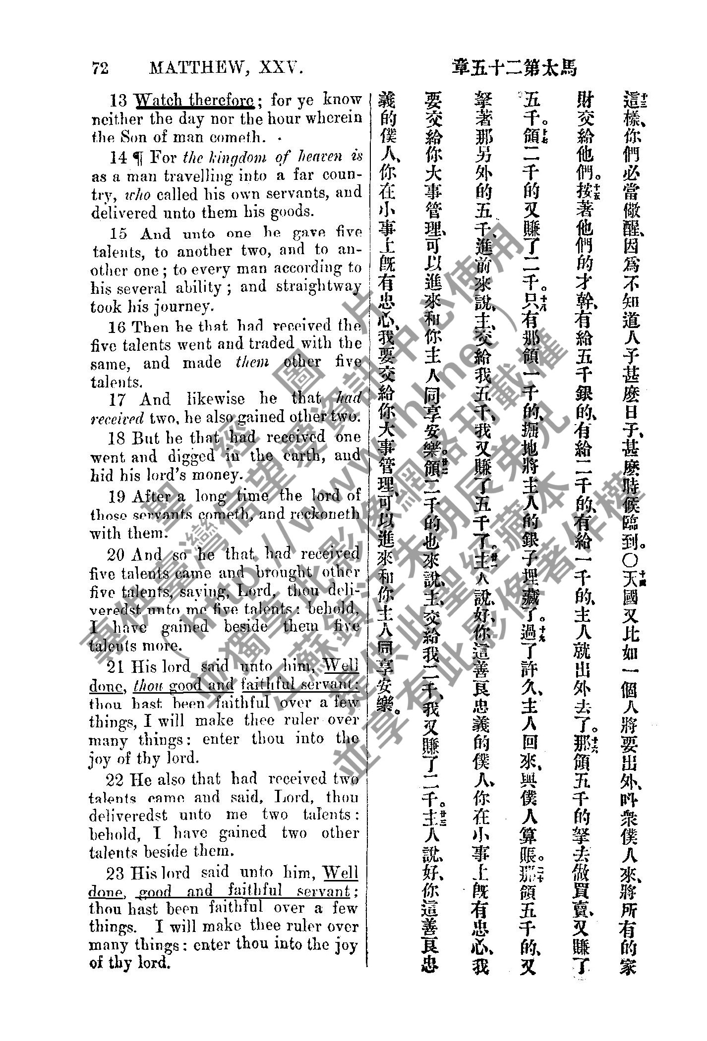 1885年新約全書 馬太福音 25 章 13 節到 25 章 23 節