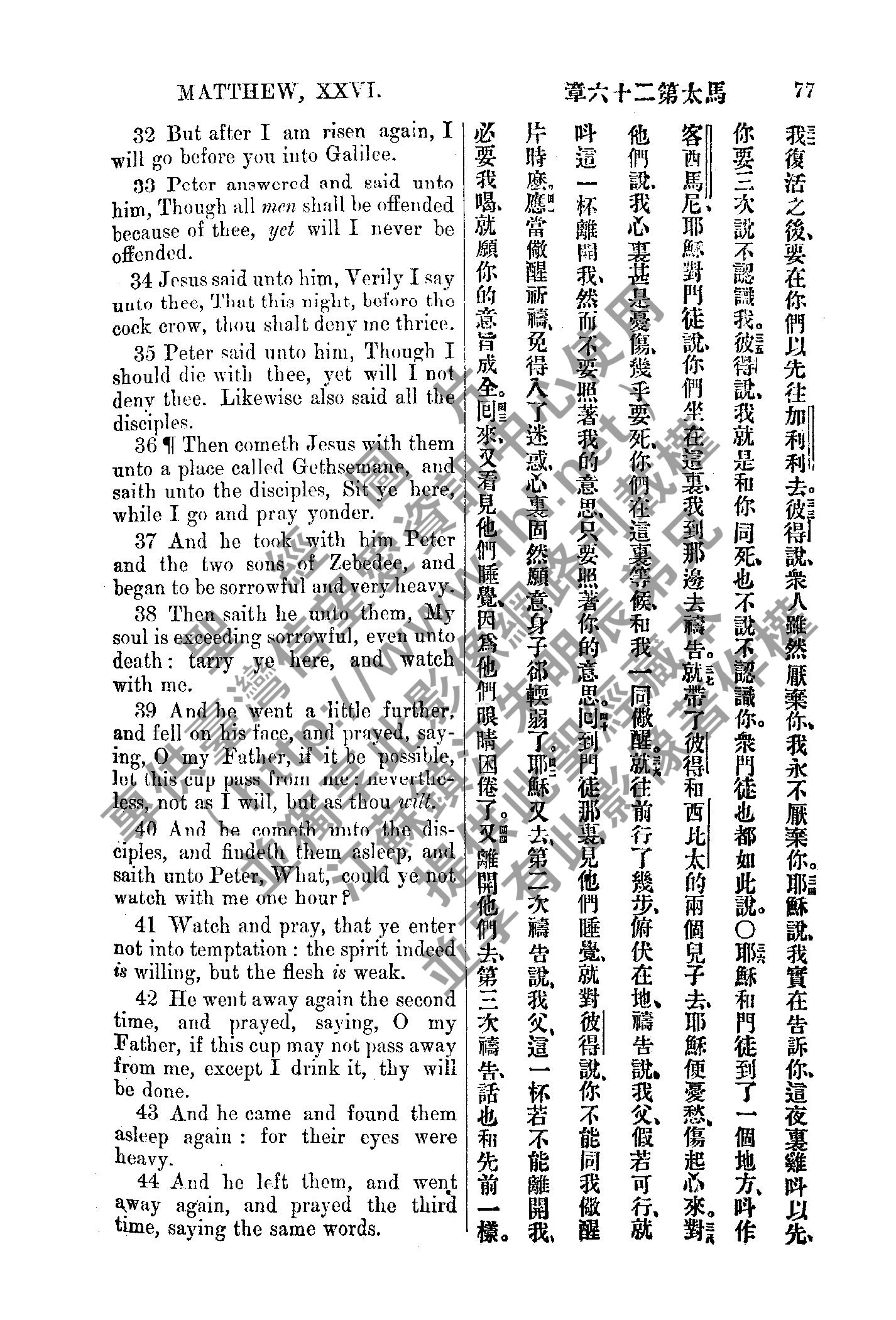 1885年新約全書 馬太福音 26 章 32 節到 26 章 44 節