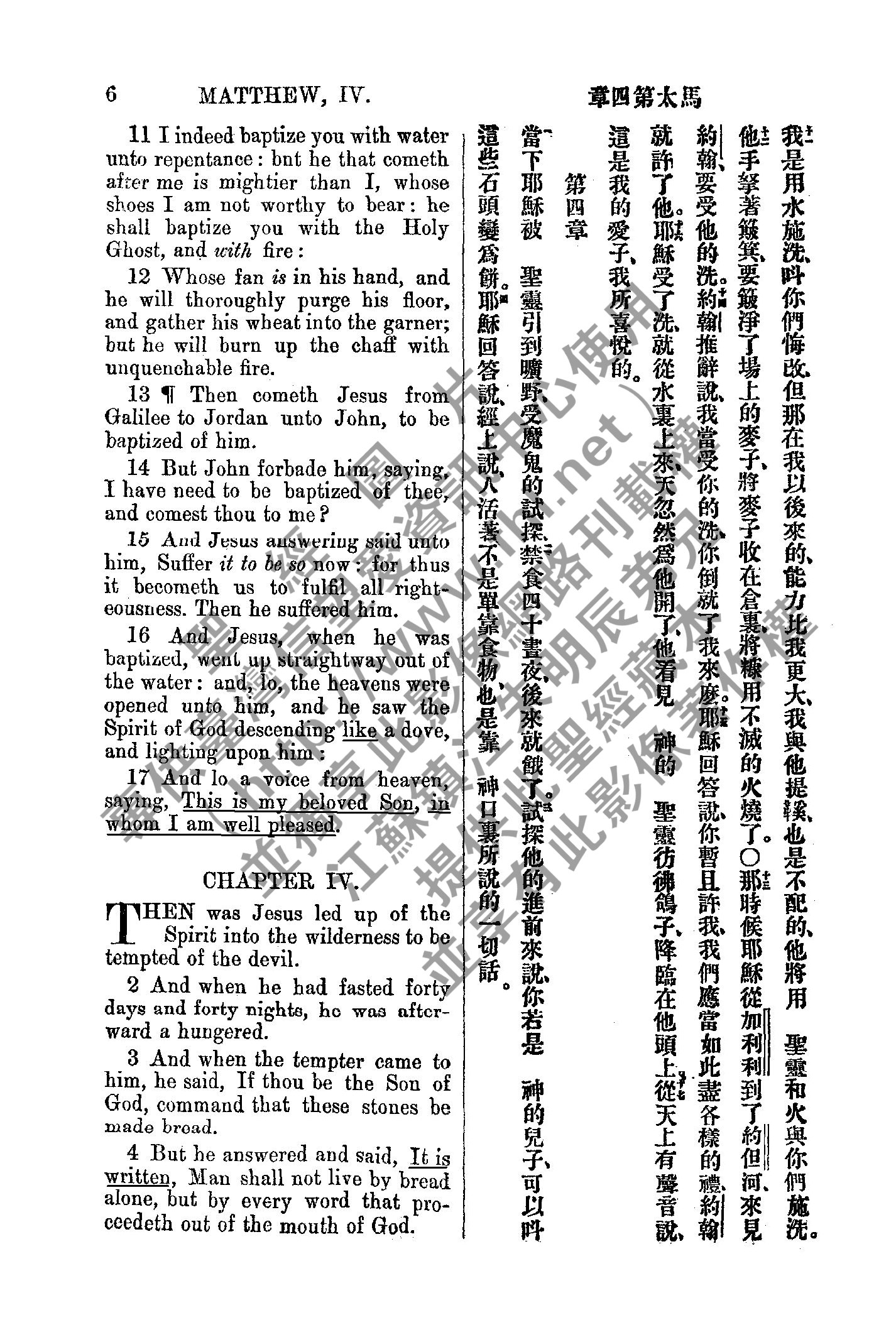 1885年新約全書 馬太福音 3 章 11 節到 4 章 4 節