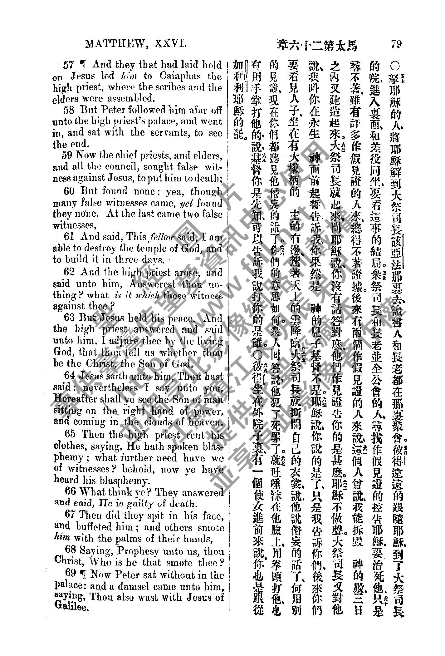 1885年新約全書 馬太福音 26 章 57 節到 26 章 69 節