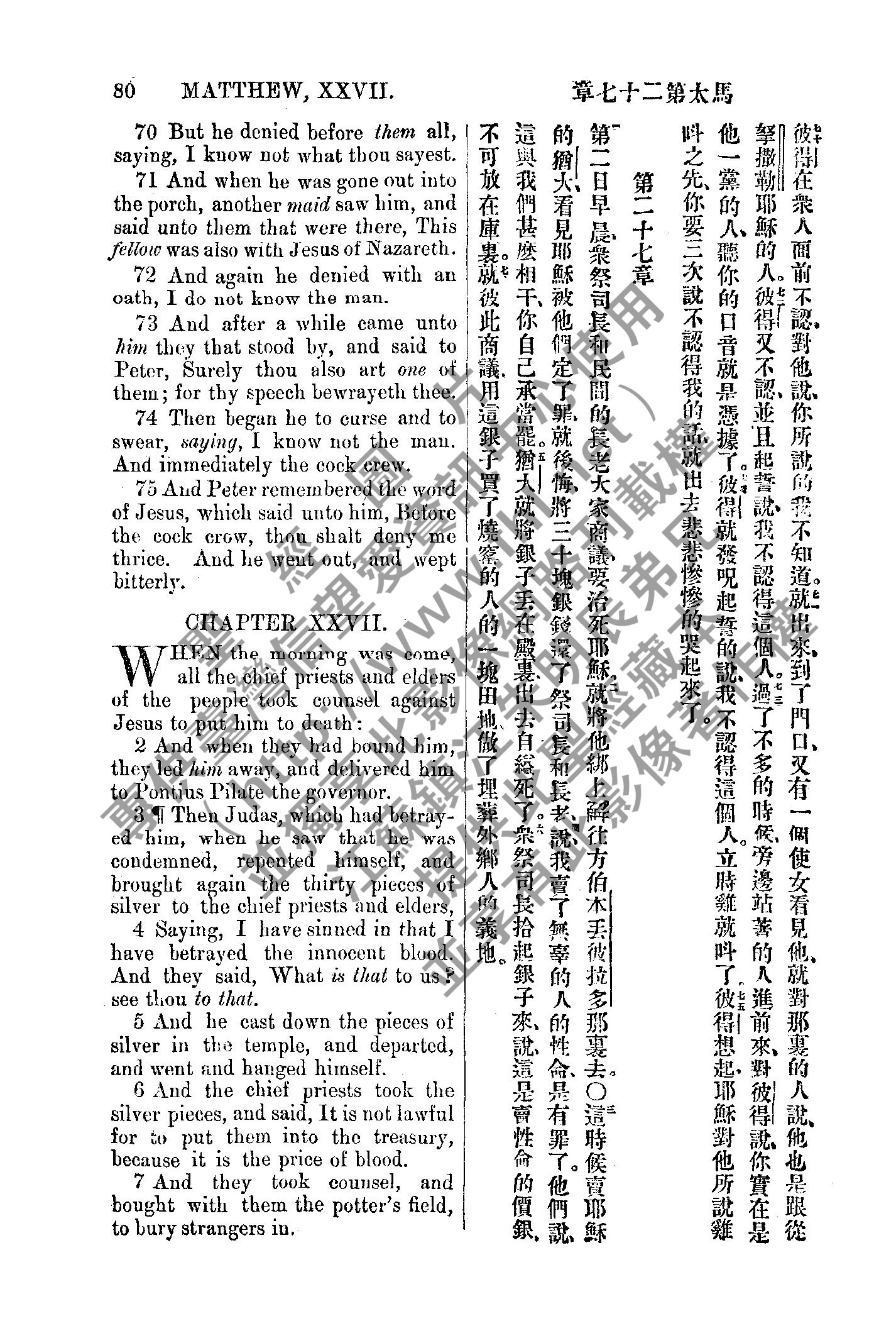 1885年新約全書 馬太福音 26 章 70 節到 27 章 7 節