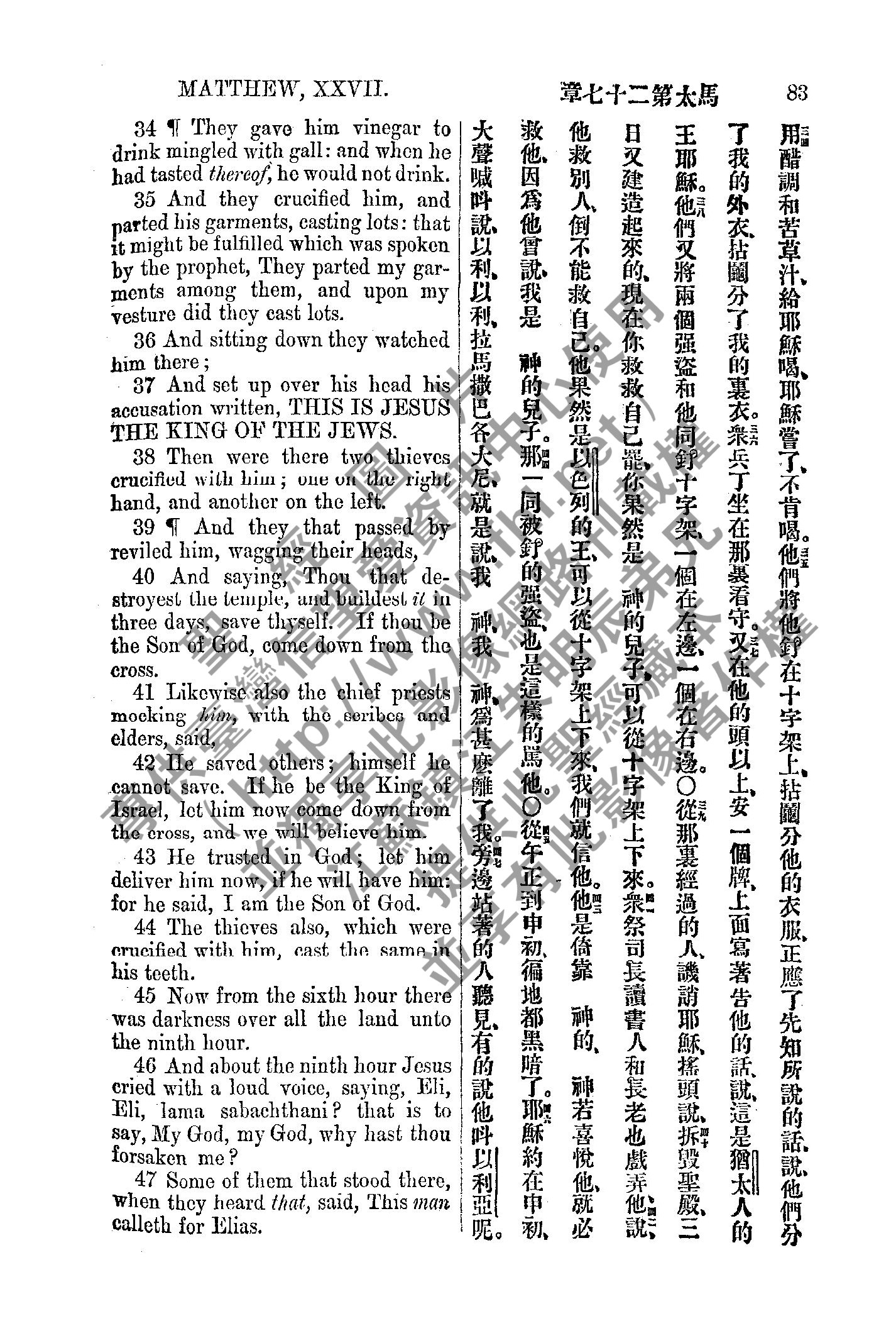 1885年新約全書 馬太福音 27 章 34 節到 27 章 47 節