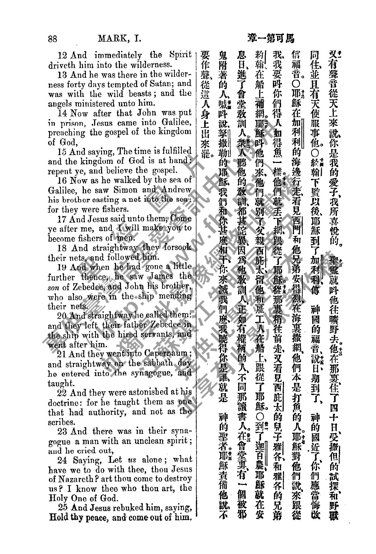 1885年新約全書 馬可福音 1 章 11 節到 1 章 25 節