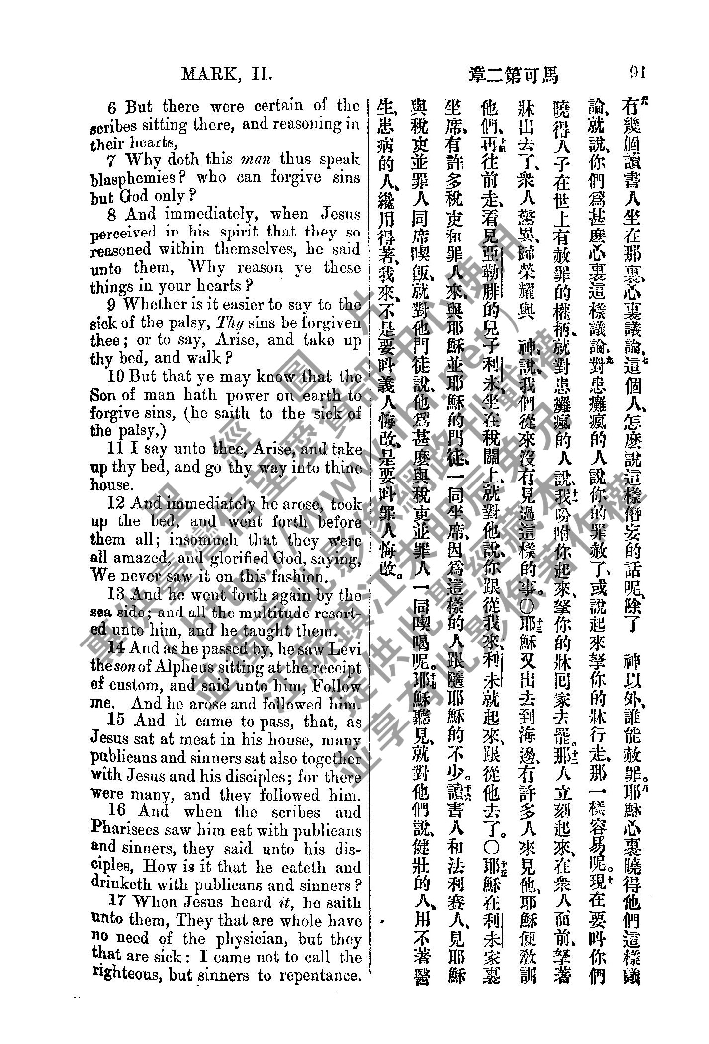 1885年新約全書 馬可福音 2 章 6 節到 2 章 17 節