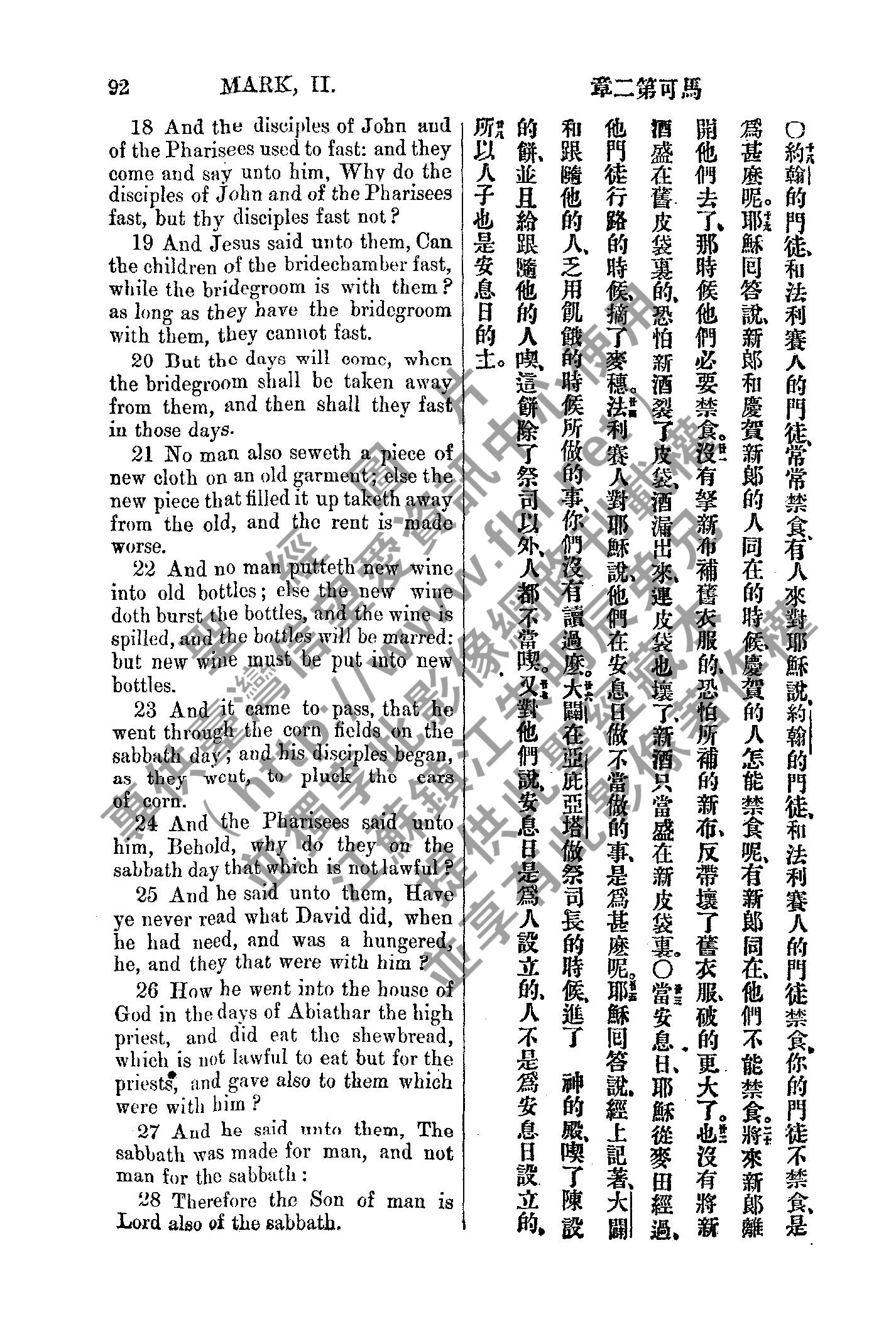 1885年新約全書 馬可福音 2 章 18 節到 2 章 28 節